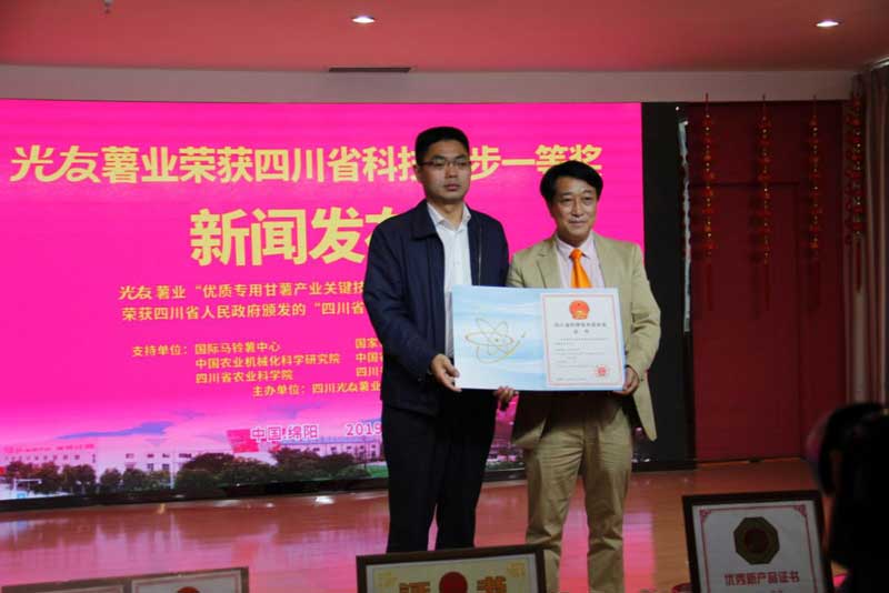 四川光友薯業(yè)有限公司(簡(jiǎn)稱(chēng):光友薯業(yè))成立于1992年10月18日,是一家以薯類(lèi)深加工為主的健康產(chǎn)業(yè)型、高新技術(shù)型民營(yíng)企業(yè)。光友薯業(yè)自1992年來(lái),不忘初心,專(zhuān)做薯業(yè),辛勤耕耘,在中國乃至世界把紅薯、馬鈴薯做成一大健康主食產(chǎn)業(yè),先后帶動(dòng)薯區60萬(wàn)薯農脫貧致富,發(fā)展成為全球行業(yè)知名企業(yè)。連續九屆被國家八部委評定為“農業(yè)產(chǎn)業(yè)化國家重點(diǎn)龍頭企業(yè)”,同時(shí)獲得“國家高新技術(shù)企業(yè)”、“全國主食加工業(yè)示范企業(yè)”、“全國馬鈴薯主食化產(chǎn)業(yè)十大領(lǐng)軍企業(yè)”、“全國守合同重信用企業(yè)” 、“推進(jìn)甘薯產(chǎn)業(yè)發(fā)展突出貢獻獎”、“四川省科學(xué)技術(shù)進(jìn)步獎一等獎”等殊榮。光友薯業(yè)獲中國專(zhuān)利70余項,光友方便粉絲獲得美國FDA認證,成為出口美國、日本免檢薯類(lèi)健康主食。