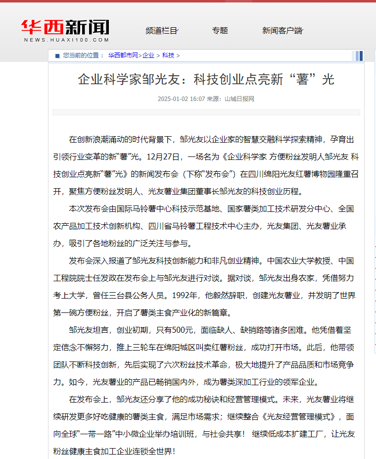 轉載華西新聞——企業(yè)科學(xué)家鄒光友:科技創(chuàng )業(yè)點(diǎn)亮新“薯”光