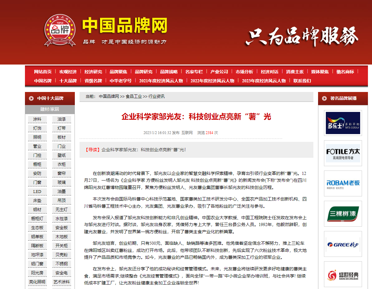 轉載中國品牌網(wǎng)——企業(yè)科學(xué)家鄒光友:科技創(chuàng )業(yè)點(diǎn)亮新“薯”光