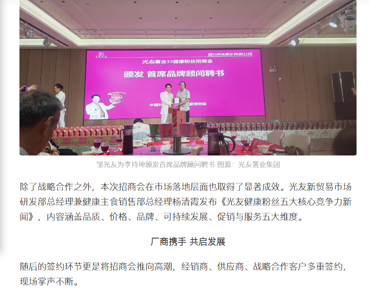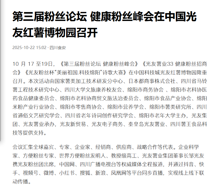 轉載四川食安今日頭條-第三屆粉絲論壇 健康粉絲峰會(huì )在中國光友紅薯博物園召開(kāi)