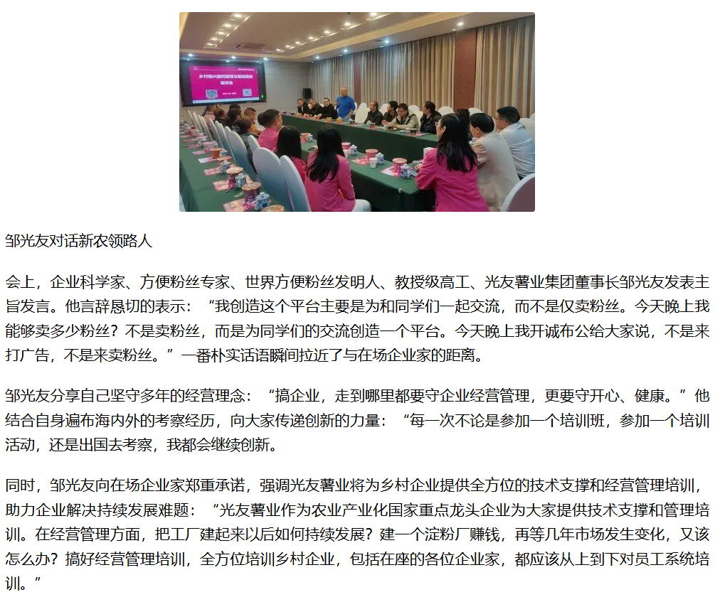 轉載鳳凰網(wǎng) 企業(yè)科學(xué)家、世界方便粉絲發(fā)明人鄒光友對話(huà)新農領(lǐng)路人