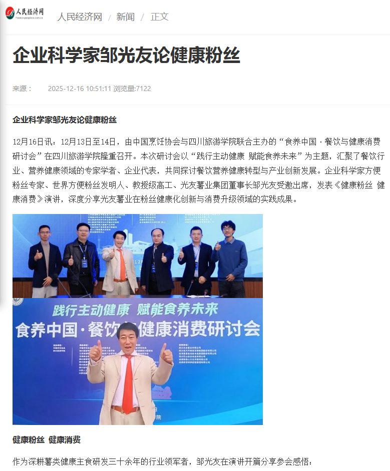 轉載人民經(jīng)濟網(wǎng)-企業(yè)科學(xué)家鄒光友論健康粉絲
